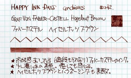 GRAF VON FABER-CASTELL Hazelnut Brown ファバーカステル ヘーゼルナッツブラウン 茶色系のインクというのもいろいろな種類がある。 赤っぽい茶、黄色っぽい茶、濃い系、薄い系、など、多種多様。 ぼくは茶色も好きな色の一つ。 ちなみに、好きな色の順位は…