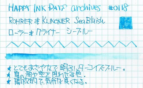 ROHRER & KLINGNER Sea Bluish ローラー&クライナー シーブルー 子どもたちの夏休みも始まったし、梅雨も明けたし、そろそろ8月で夏本番っていう感じだし、ということで、夏らしいインクが続いておりますが、今日ご紹介するインクもまさにザ・夏って感じの…