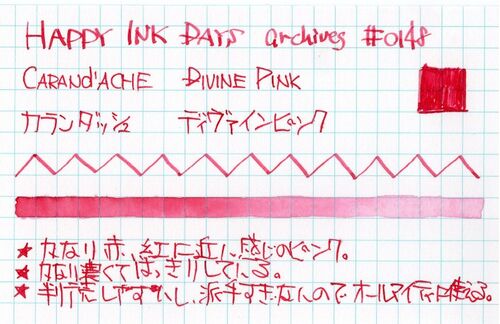 CARANd`ACHE DIVINE PINK カランダッシュ ディヴァインピンク ヒプノティックターコイズのイメージがあるから、ついついカランダッシュのインクって華やかな色で、発色も良いんだろうなって期待しちゃいがちなんだけど、このピンクに限って言うと、拍子抜け…