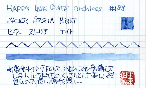 SAILOR STORiA Night セーラー ストリア ナイト セーラーの顔料インクシリーズ。従来の国産の万年筆用顔料インクというのは、その用途が(公的文書など)限定されているためか、ブルーブラックのように、かなり限られた色しかなかったのですが、セーラーのス…