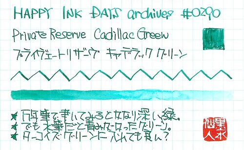 Private Reserve Cadillac Green プライベートリザーヴ キャデラックグリーン プライベートリザーヴは個性的な色が多いと昨日ご紹介しましたが、このキャデラックグリーンも、そんな個性的なグリーンのひとつなのではないかと思います。 これは、細字でかく…