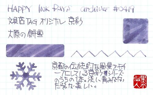 文具店TAG 京彩 大原の餅雪 基本的にターコイズラバーなぼくですが、実は他にもこういう傾向の色が好き!っていうのがあります。例えば、この「大原の餅雪」なんかはまさにそういう色。 こういう何とも言えない、独特の雰囲気を持った色が大好きなのです。あ…