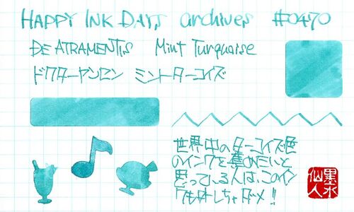 DE ATRAMENTIS Mint Turquoise ドクターヤンセン ミントターコイズ はぁ…。サンプルのカードを書きながら、思わずため息が漏れてしまうほどきれいな色。やっぱりぼくはこういう色が好きなんだなぁとつくづく思うのでありました。 これもまた日本未発売なので…