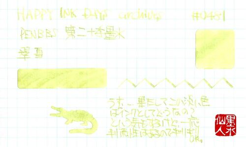PENBBS 第二十季墨水 翠雪 中国産のシマーリングインク。 ラベルだけを見ると、もっと濃い緑色を思い浮かべたんだけど、実際書いてみたら、薄い黄緑色。最初に面で塗ってみたのですが、果たしてこれは読むことができるの?と不安になりました。 で、実際に万…
