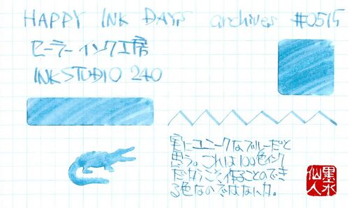 SAILOR インク工房 INK STUDIO 240 このインク工房100色の240番もまた少しユニーク。 通常のラインナップでは出てこないような微妙な色合いを見事に表現しています。イメージとしては、少し青墨に近いかなぁ。でもこちらの方は染料インクなので、染料インク…