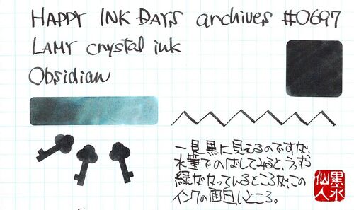 LAMY crystal ink Obsidian パッケージを見ても、ボトルを見ても、そして細字で文字を書いても、黒にしか見えないのですが、水筆で塗ってみると、うっすらと緑がかった黒であることがわかります。 こういう色がやっぱり面白いなと思うのです。万年筆インクな…