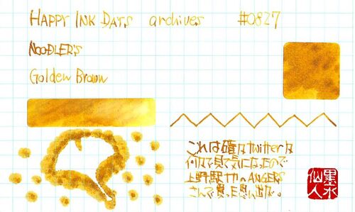 NOODLER'S Golden Brown 数少ない日本の取り扱い店でも、このインクはどうやら手に入れることができるらしく、これは確か上野のエキナカにあるAngesさんで購入した気がする。Twitterで一時にこの色のことが話題になり、これは手に入れなくては!と思ってその…