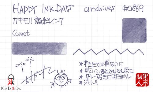 カキモリ 顔料インク Comet カキモリのオリジナルインクは、どれもマット感があってぼくはそこが大きな特徴だと思っているんだけど、このブルーグレー系のCometもそんなマットな質感を感じるとても良い色。 渋いんだよねぇ。この独特のあたたかみのある感じ…