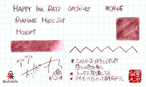 DIAMINE Music Set Mozart うーむ。色のイメージというのは本当に人によって解釈が違うなと思うのですが、ぼくの中のモーツアルトはこんな地味な色ではなく、(色自体はすごく素敵な茶色なんだけど)、もっと派手なイメージなんですよねぇ。 映画「アマデウ…