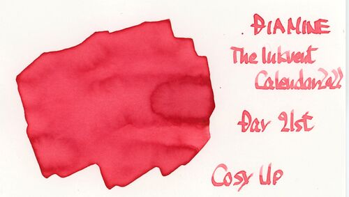 DIAMINEThe Inkvent Calendar(2022)Cosy Up インクヴェントカレンダー、21日目のインクは「Cosy Up」という名前のインクです。これは「~と親しくなろうとする、~と近づきになろうとする」という意味があるそうです。色は赤。でもパキッとした赤ではなく、…