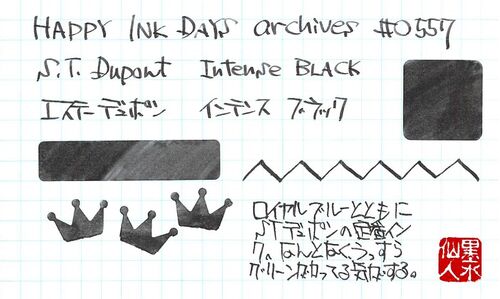 S.T.Dupont Intense BLACK エステー・デュポン インテンスブラック こちらも、S.T.Dupontの定番インク。 これも、やはりコレクターじゃなかったら買わなかった色かもしれない。ブラックって実際にあんまり使わないんだもん。 でもね、このブラック、少しだけ…