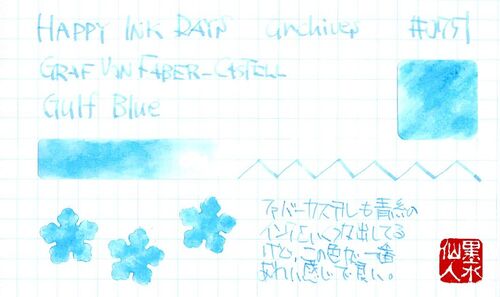 GRAF VON FABER-CASTELL Gufl Blue 青系のインクって、人気があるからなのか、それとも青そのものに色の幅があるからなのか、とにかくどのブランドも青系のインクは多いです。日本でもKOBE INK物語に青系の色が多いことは知られています。 そして、このファ…
