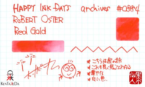 ROBERT OSTER Red Gold こちらのインクも、昨日のSilver Fire&Ice同様、KA-KU大阪でみつけて即買いしたインクです。これもまたラメが見えにくくてごめんなさい。これは実際にインクを試してもらわないとわからないと思うのですが、とにかく細かい金のラメが…