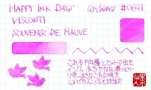 VISCONTI 花咲く桃の木(SOUVENIR DE MAUVE) 昨日ご紹介した「麦畑」と同時発売となったクリスマス限定ボックスの中に入っていたインク。最近、なんだか限定インクと万年筆のセットっていうのがブームなのかしら?本当に困るんですけど!って思いながらも、つ…