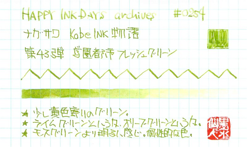 今発売中の趣味の文具箱Vol.44の連載記事でも書いたのですが、緑インクというのは、実に幅が広い。黄色っぽい緑、青に近い緑、深い色、明るい色というように、色々な軸に存在している。