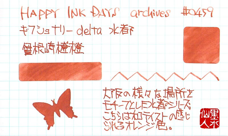 この曾根崎橙橙がまさにそういう感じの色で、朱色ともオレンジとも違う、独特の風合いを持った色と言えるでしょう。