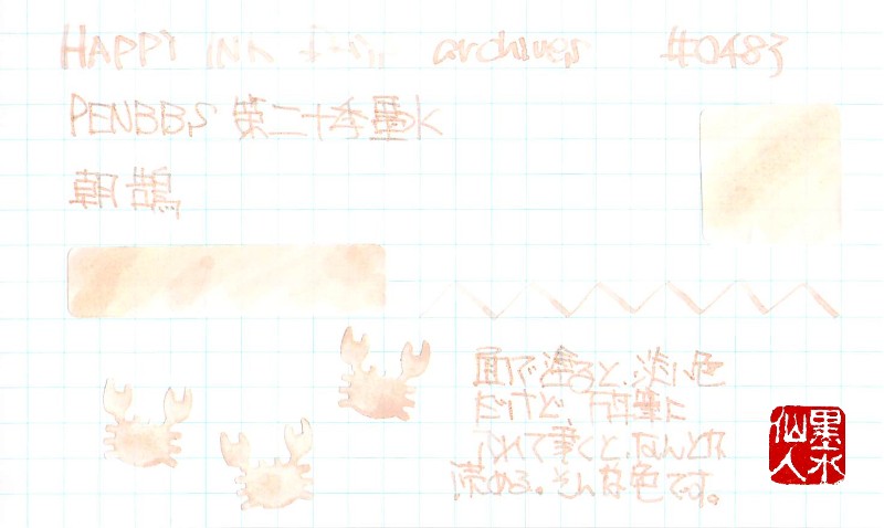 さて、こちらの「朝鵠」ですが、淡い肌色。判読性がちょっと心配になるけれども、書いてみると、意外ときちんと読めます。ただ、長文となると読むのが大変かなぁ。微妙なところで、こればかりは実際にノートに書いてみないとわからないところはありますね。今後使う時には、ツイッターなどでいろいろとあげていこうかなと思っているところです。