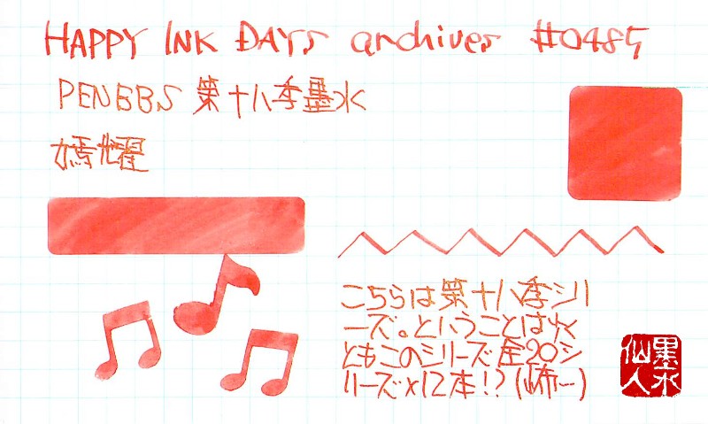 さて、今日ご紹介するインクは十八季のもの。他のインクはわからないのですが、今までご紹介したインクと比べるとぐんと色が濃くなるということは、十八季自体が濃いめの色が中心なのかもしれません。これは次のご紹介の時にいろいろと検証できるのではないかと思います。