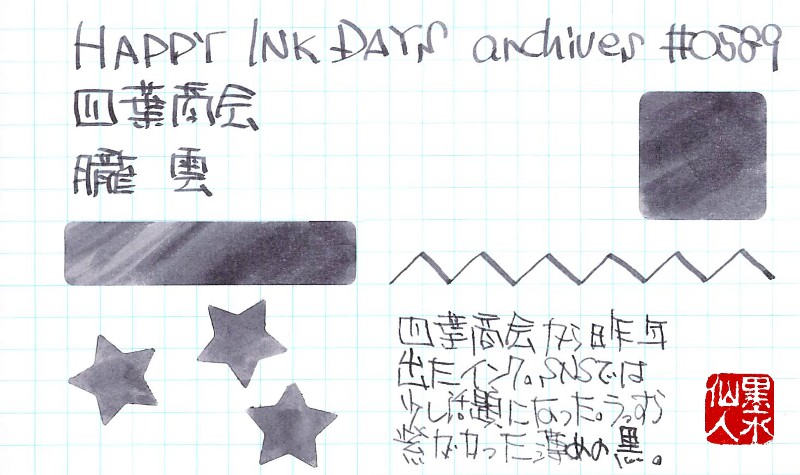 紫色に近い黒という感じでしょうか。一見黒に見えるけど、よく見ると紫が入っているというのは、BUNGU BOXさんの魔女インクでも同じ感じでした。
