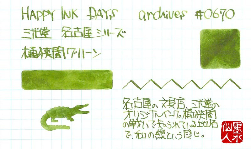 名古屋の文具店、三光堂さんのオリジナルインク。歴史に疎いぼくでも、「桶狭間の戦い」という名前ぐらいは知っている(でも実際に誰と誰が、どういう内容で戦ったのかということはあまり良く知らないの…ごめんなさい。本当に歴史が苦手でして…汗)。