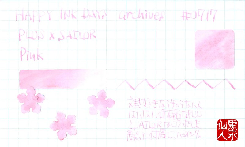さて、このインクはかなり淡い感じのピンク。うーん、文字を細字で書こうとすると判読性が弱まる。
